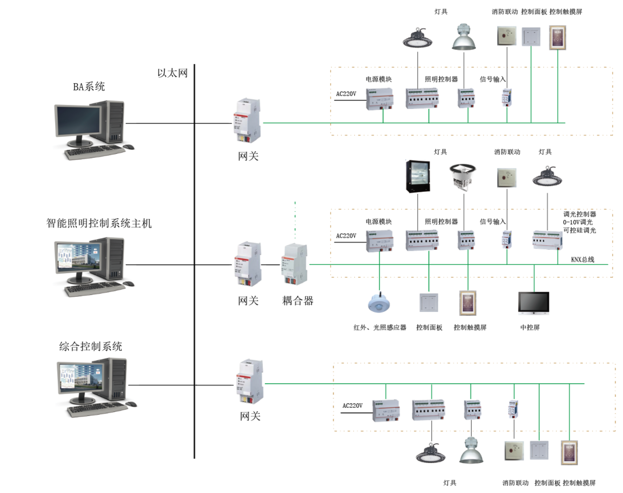 系统支持单控、区域控制、自动控制、感应控制、定时控制、场景控制、调光控制等多种控制方式,支持延时控制,避免同时亮灯负荷对配电系统造成冲击。模块不依赖系统,可独立工作,每个模块均自带时间模块,可根据经纬度自动识别日出日落时间实现自动控制功能。