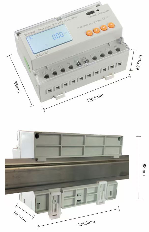 该系列产品采用DIN35mm导轨式安装结构,体积小巧,能测量电能及其他电参量,可进行时钟、费率时段等参数设置,精度高、可靠性好、性能指标符合国标GB/T17215-2002、GB/T17883-1999和电力行业标准DL/T614-2007对电能表的各项技术要求,并且具有电能脉冲输出功能;可用RS485通讯接口与上位机实现数据交换。