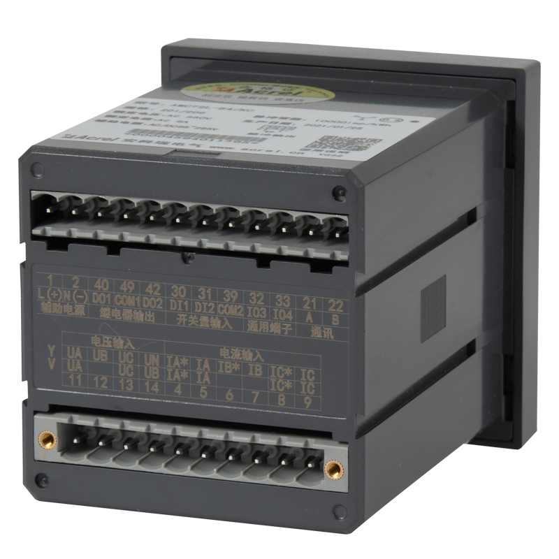 它集成全部电力参数的测量(如单相或者三相的电流、电压、有功功率、无功功率、视在功率、频率、功率因数等)、复费率电能计量、四象限电能计量、谐波分析以及电能监测和考核管理。多种外围接口功能:带有RS485/MODBUS-RTU协议;带开关量输入和继电器输出可实现断路器开关的“遥信”和“遥控”的功能,采用LCD显示界面,通过面板按键来实现参数设置和控制,非常适合于实时电力监控系统。