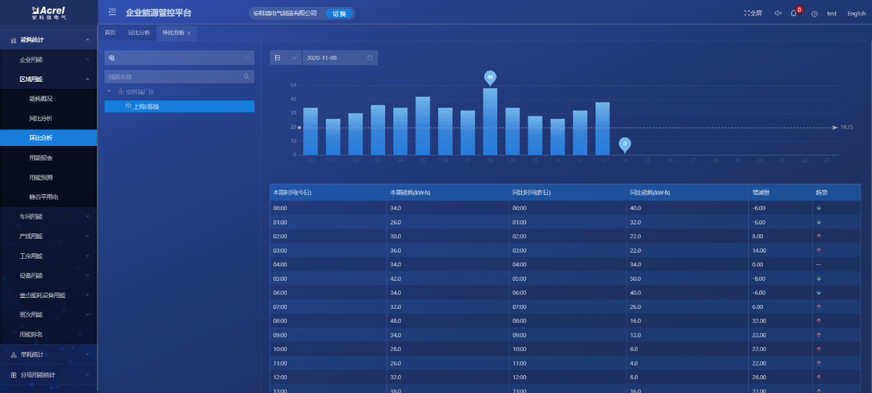 ③ 同期能效比:实现同年、同期、同一区域能耗对比,方便节能数据分析;