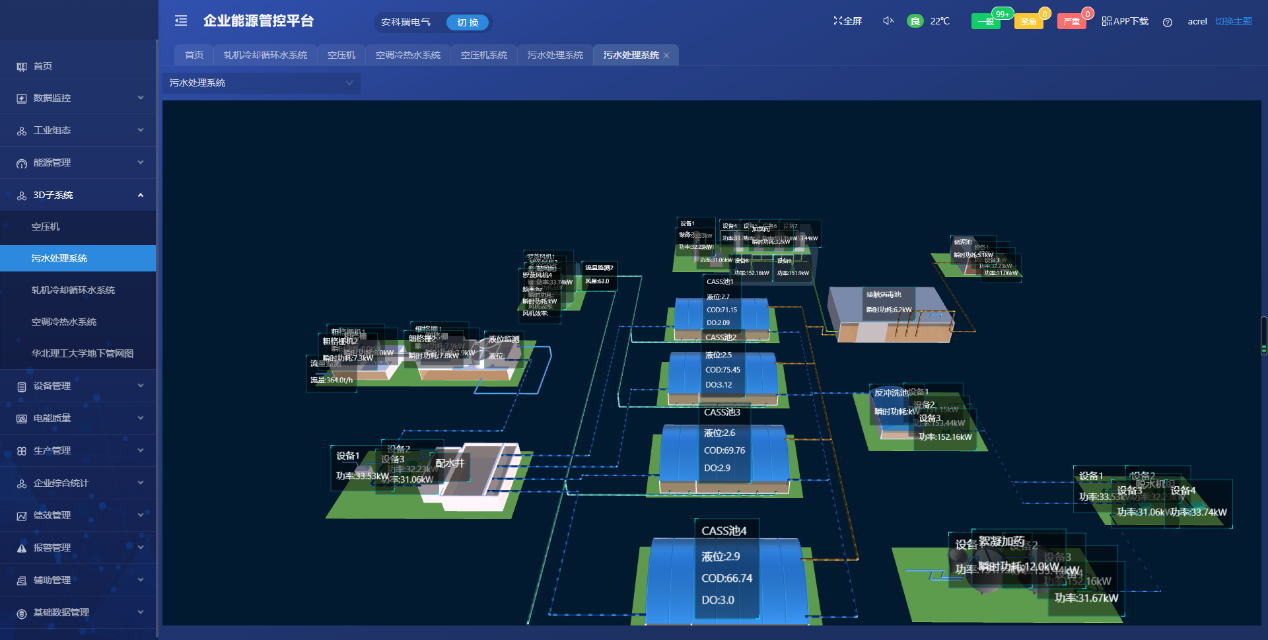 ① 搭建厂区能源管理系统的基本框架,对各个用能环节进行实时监测;