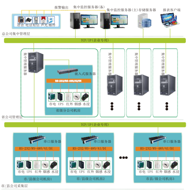 基础设施集中监控采用一体化监控采集系统(运行在嵌入式服务器上),系统主要功能有: